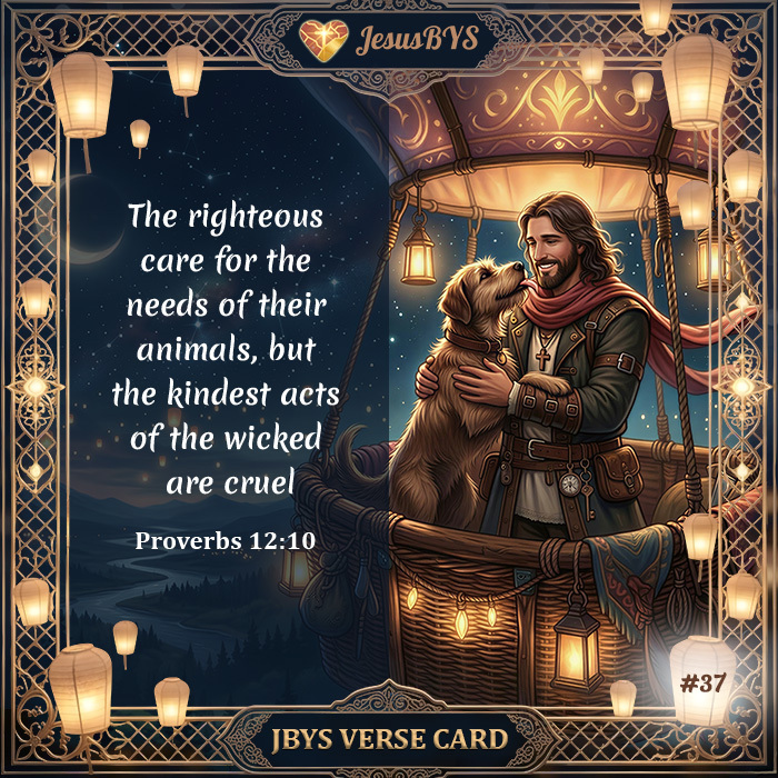 The JesusBYS Proverbs 12:10 Verse Card is more than an image — it is a visual reminder that true righteousness is revealed through acts of kindness, care, and love toward all living beings.
